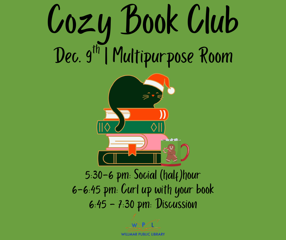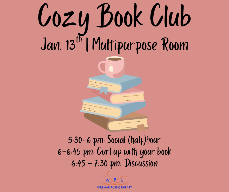 During Cozy Book Club, participants can come and go at any time! Curated for those who want low-stress socialization,