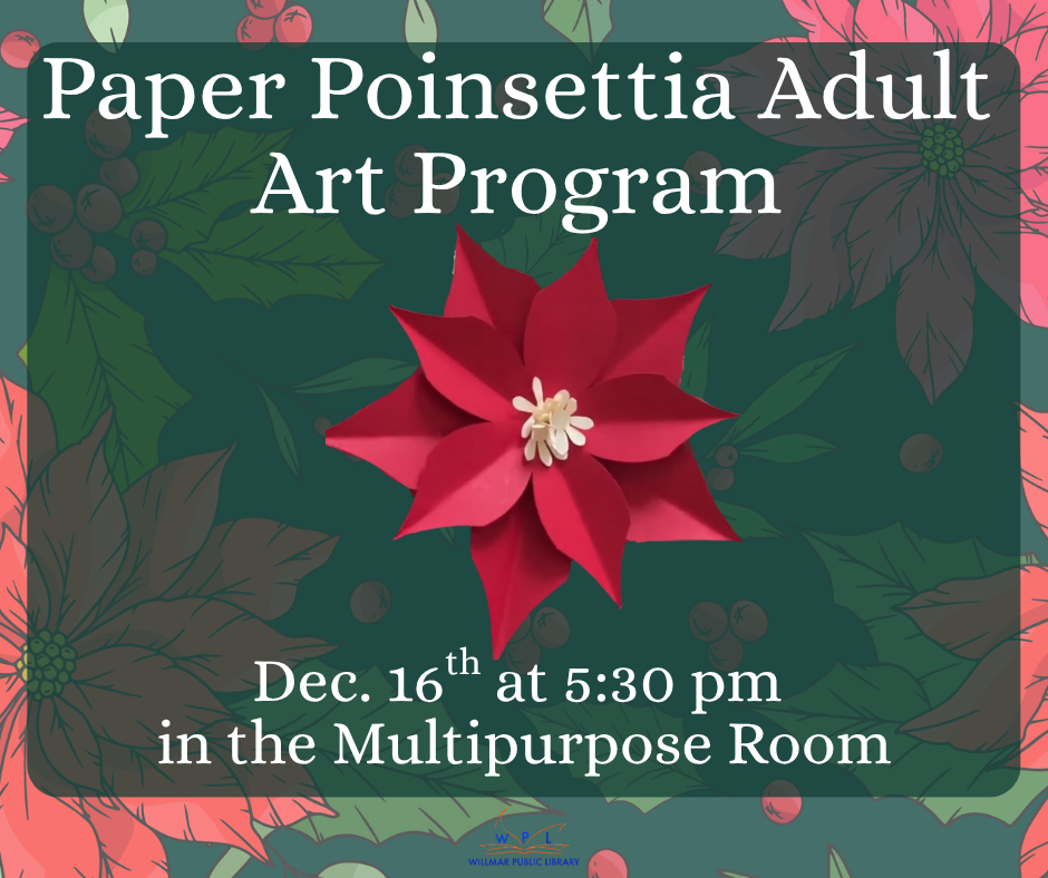 Join us to make paper poinsettias! To sign up for this program, please follow this link.