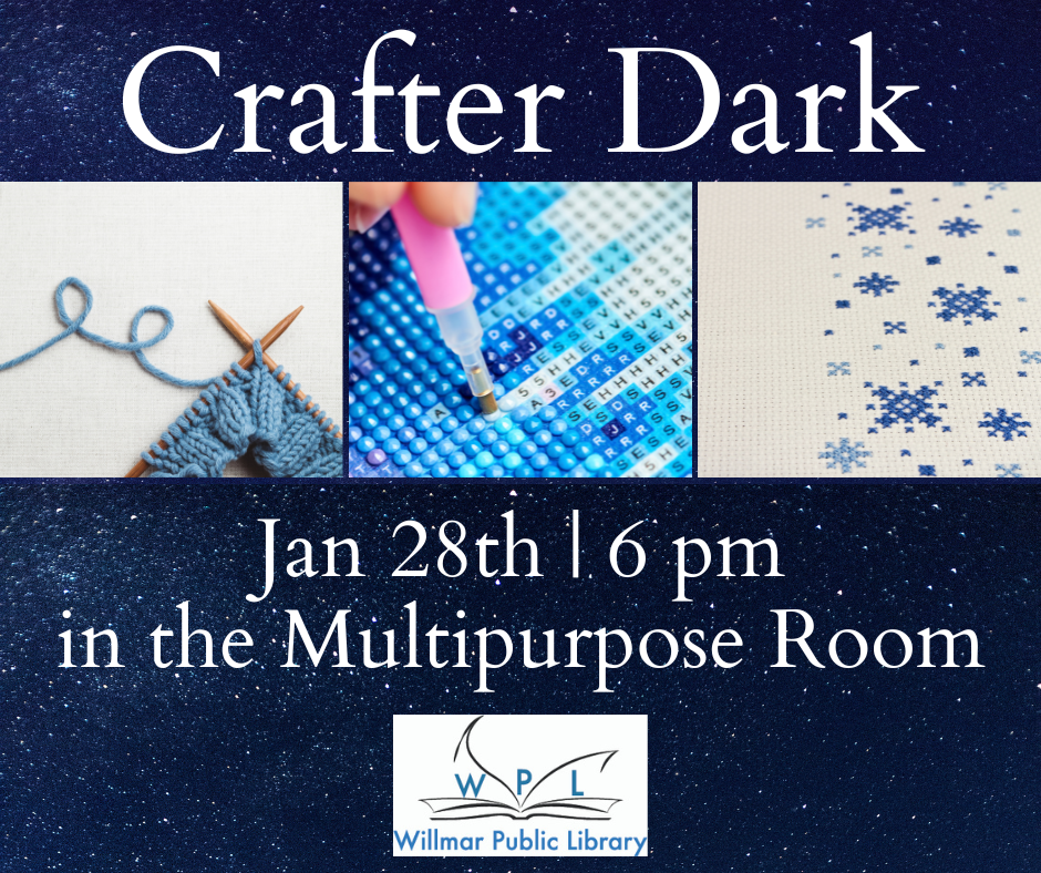 Bring in whatever craft you are working on (knitting, diamond painting, etc.) and