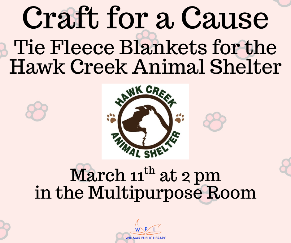 We will be making tie fleece blankets for the kennels at the Hawk Creek Animal Shelter!