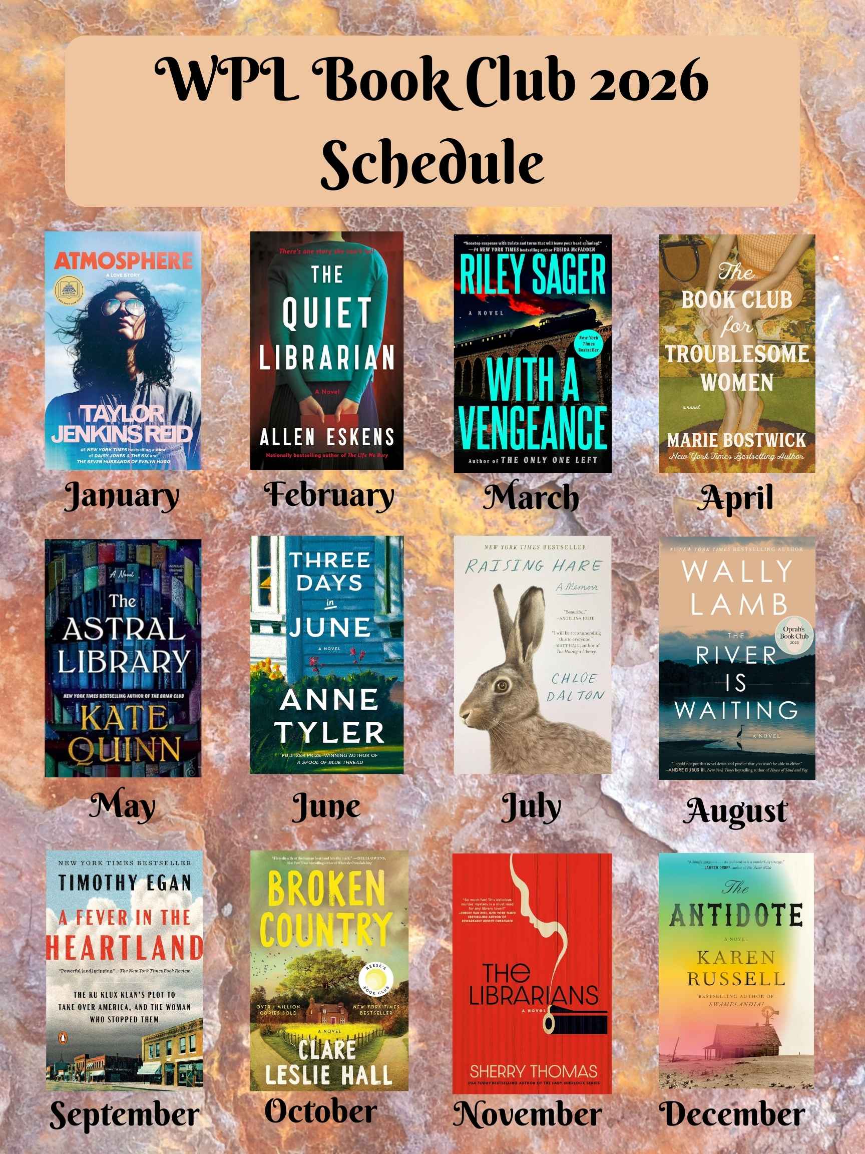 January 2026’s book will be Atmosphere: A Love Story by Taylor Jenkins Reid.