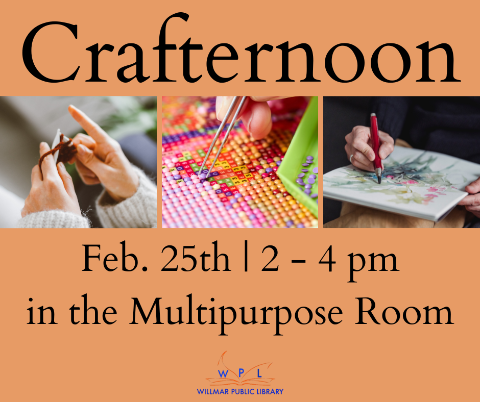 Bring in whatever craft you are working on (knitting, diamond painting, etc.) and