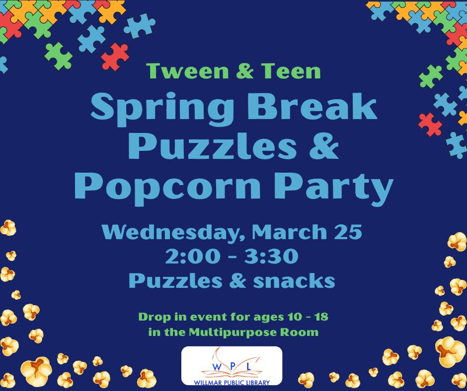 You are invited to our Tween and Teen Puzzles and Popcorn