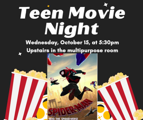 We will be watching Spiderman: Into the Spiderverse (PG). Popcorn and refreshments will be provided.